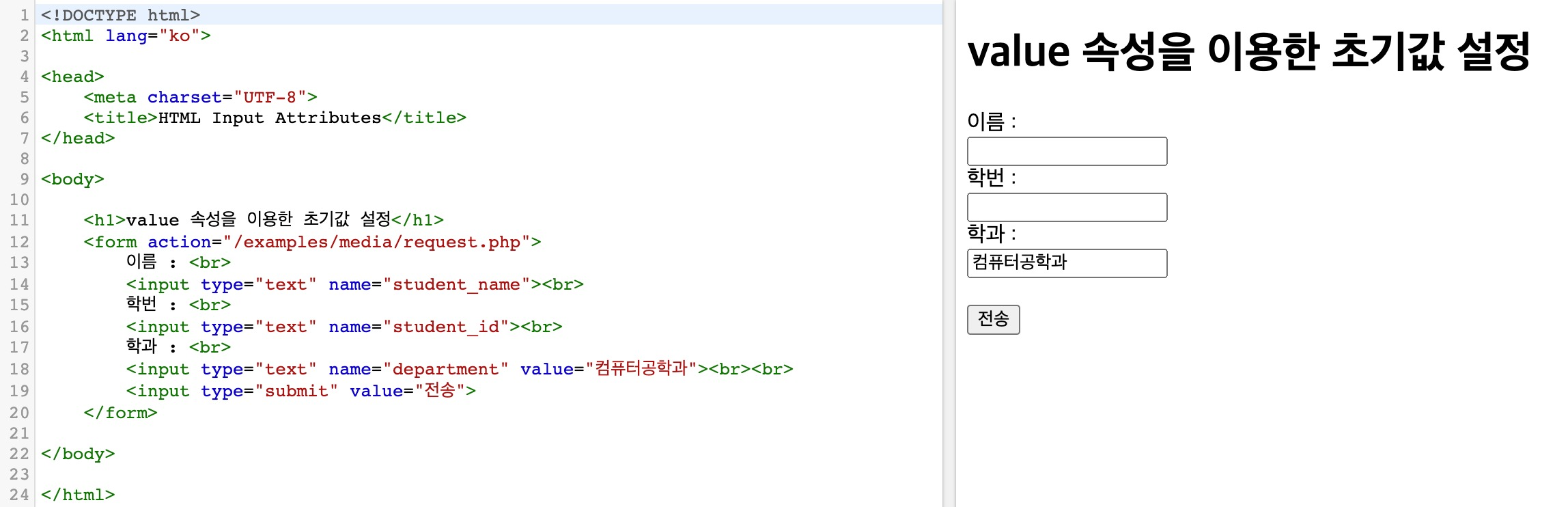 <input> 태그 : 사용자가 데이터를 입력할 수 있도록 하는 입력 필드를 정의 할 때 사용한다.